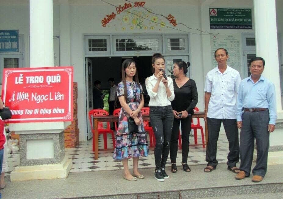 Địa điểm đầu tiên Tân Á Hậu Ngọc Liên tổ chức từ thiện chính là quê nhà - nơi cô được sinh ra và lớn lên tại Ấp Khánh Hòa – Xã Phước Hưng – Huyện An Phú – Tỉnh An Giang.
