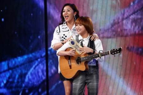 Thiên Khôi và giám khảo Văn Mai Hương tại cuộc thi Vietnam Idol Kids 2017
