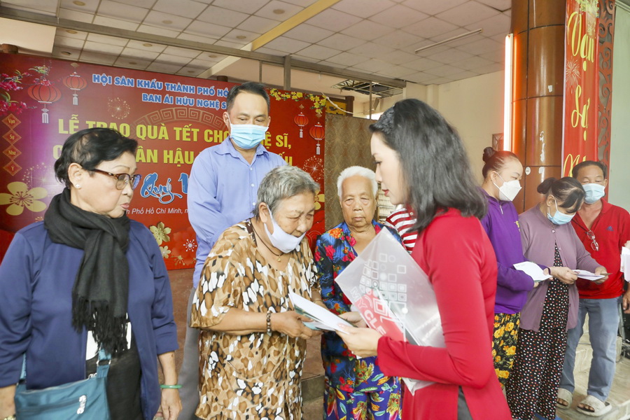 NSƯT Trịnh Kim Chi - Phó chủ tịch Hội Sân khấu TP.HCM, Trưởng Ban Ái Hữu nghệ sĩ - cho biết sau đợt này sẽ tiếp tục trao cho nhiều nghệ sĩ, anh em công nhân hậu đài tại trụ sở Hội Sân khấu TP.HCM (quận 3) và Chùa Nghệ sĩ (quận Gò Vấp) trong một vài ngày tới.