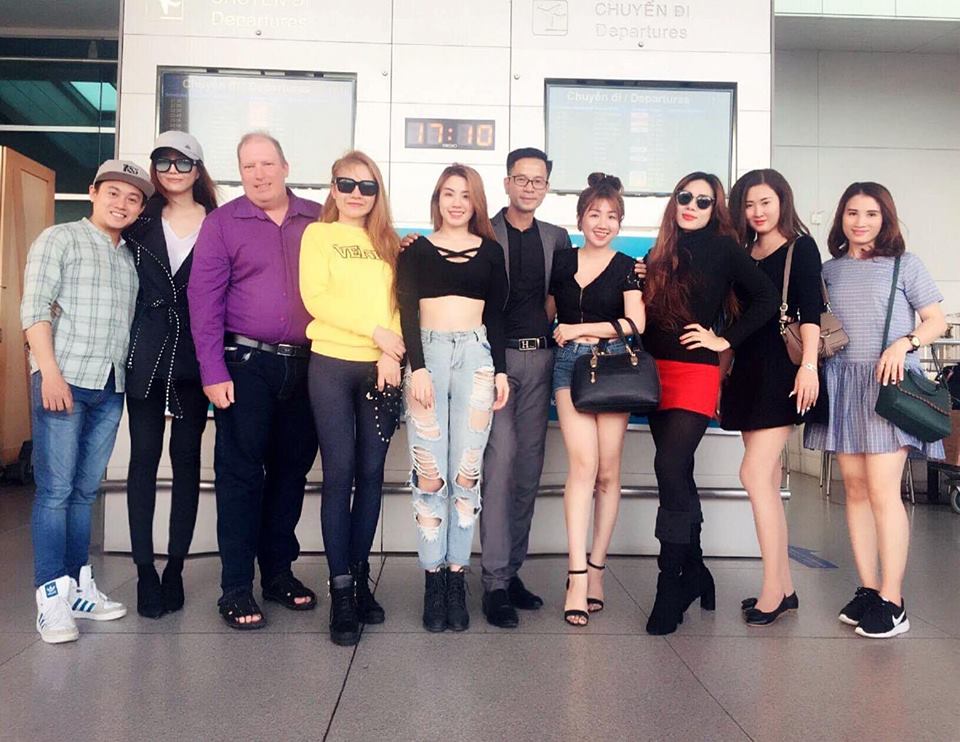 Ca sĩ Sha Băng (áo vàng) và các thành viên trong chuyến lưu diễn