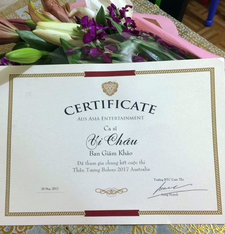 Người thứ 2 mà Vi Châu muốn cám ơn trong chuyến đi này chính là bầu show Long Huỳnh, người đã tạo điều kiện và mời Vi Châu sang Úc diễn và làm giám khảo của cuộc thi Thần tượng Bolero 2017 tại đây.